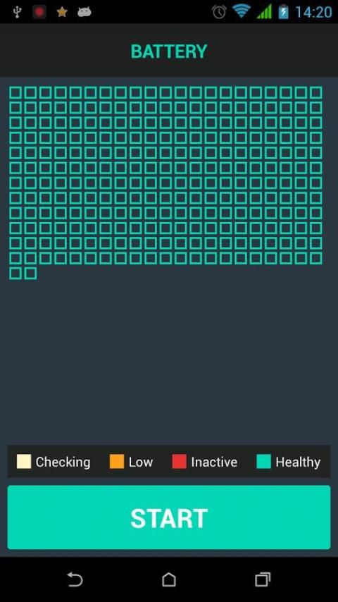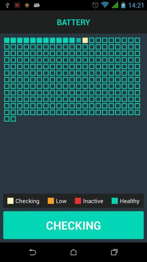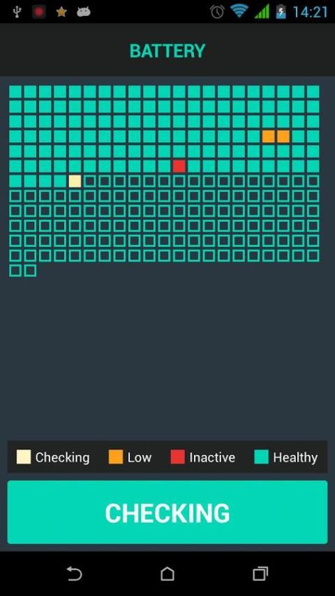 - Tampilan grid sel baterai (memvisualisasikan kepada pengguna) sehingga Anda akan tahu kesalahan asal dan melihat bagaimana aplikasi ini akan memperbaikinya