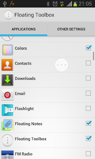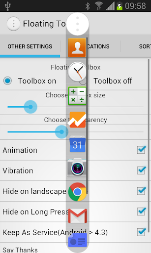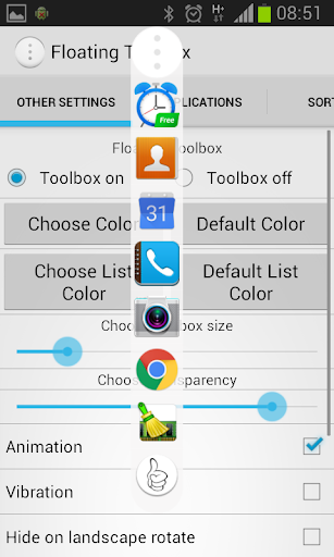 - Add applications to Floating Toolbox by long pressing the Floating icon or press the launcher icon.
