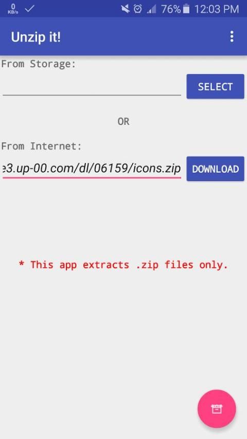 * Note: This app extracts .zip files only. Also, this app can not extract protected files.