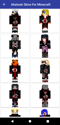 Akatsuki Skins untuk Minecraft PE mudah: Klik Mengunduh Skins;Kulit ditempatkan di galeri, atau menginstalnya ke dalam MCPE.