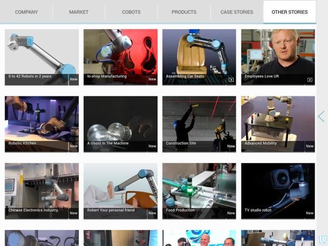 Aplikasi ini memungkinkan Anda mengintip ke dalam dunia UR robot. Perhatikan bagaimana seri UR telah bekerjasama dengan orang-orang dalam industri yang berbeda, dan membuat mereka alur kerja lebih mudah.
