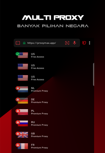 Aplikasi ProxyMax browser proxy ini gratis dan sangat mudah digunakan, tanpa menggunakan VPN yang ribet penggunaanya. Anda hanya butuh satu aplikasi ini saja, tidak butuh aplikasi VPN lagi. Ada banyak pilihan proxy negara dengan koneksi cepat dan aman. Tinggal buka aplikasi dan semua situs / website apapun yang terblokir akan terbuka semua.
