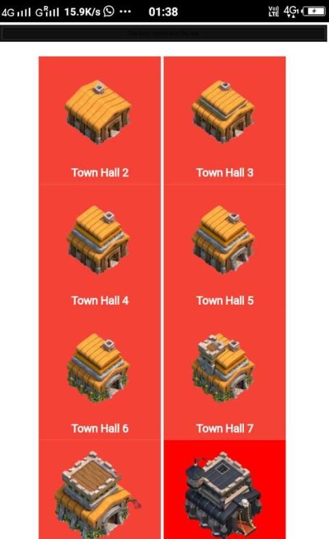 Ini berisi Maps dari Hall 1 Town ke balai kota 11 dengan tiga kategori Perang, Trophy dan Hybrid.