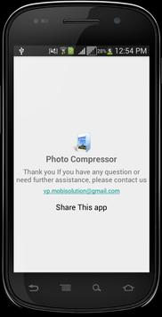 This app will allow you to compress large size photos into smaller sized photos with very negligible loss in quality of the image.
