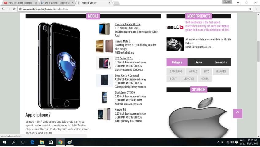 Ini adalah aplikasi berbasis web terbaru dari 'galeri mobile' toko-toko ponsel. Anda dapat melihat dalam aplikasi ini toko mobile kami details..included harga aksesoris ponsel dan mobile, berbagai jenis aksesoris ponsel, aplikasi mobile rincian perbaikan etc..This juga memberikan berita ponsel terbaru di toko bermain.