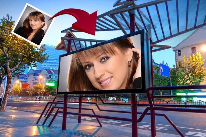 Membuat gambar Anda pada billboard di jalan-jalan dan bangunan menggabungkan gambar Anda pada billboard! Biarkan semua orang melihat Anda dan menyadari betapa indah Anda melalui foto terbaik dalam modus "kerangka buletin board". Fantastis akan membuat segalanya tampak seperti terkenal dan berharga