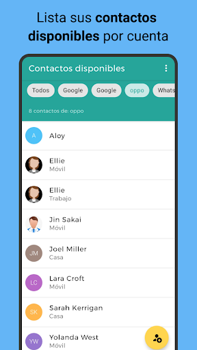 Kelola kontak perangkat dengan cara yang mudah dan dikelompokkan berdasarkan jenis akun.