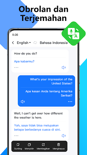 Hancurkan hambatan bahasa dan bantu Anda mengobrol dengan teman asing dengan bebas.