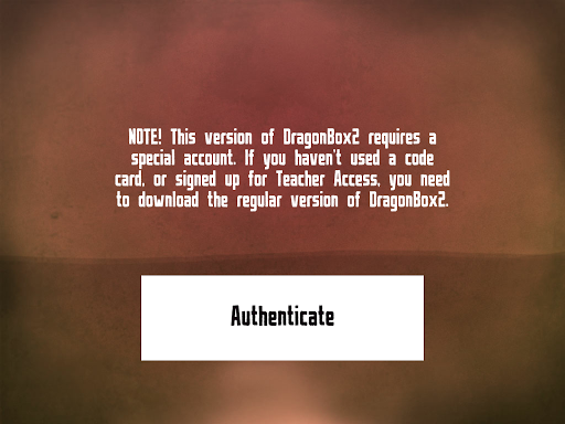 NOTE! This version of DragonBox Algebra 12 requires a special account. If you haven’t used a code card, or signed up for Teacher Access, you need to download the regular version of DragonBox Algebra 12 .