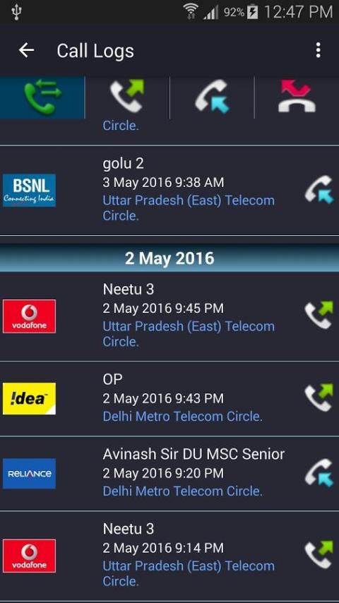 Smart Log Panggilan: Panggilan log dengan detail halus dari setiap panggilan seperti Lokasi panggilan, SIM layanan nama penyedia layanan dll