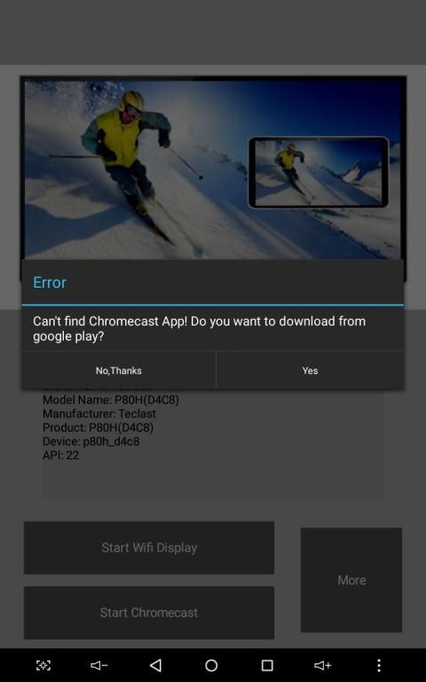 Ini adalah perangkat lunak yang membantu mengaktifkan Wifi Tampilan / Chromecast Cast Screen pada perangkat yang memiliki Android versi 4.2 dan lebih besar. Ini "Mirrors" permainan atau layar youtube ke layar eksternal.