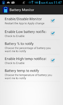 A Lightweight tools to monitor your battery. It provides Overheat and Low battery notification to maintain battery's life.