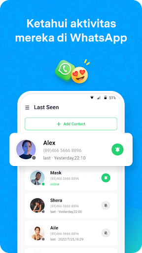 Anda akan langsung diberitahu setiap kali kontak yang dipilih menjadi online/offline secara real-time.