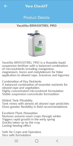 Yara CheckIT merupakan aplikasi smartphone di bidang pertanian yang menawarkan sebuah perpustakaan photo tanaman, yang dapat membantu petani mengidentifikasi kemungkinan defisiensi unsur hara secara mudah dan cepat. Setelah penyebab defisiensi ditemukan, aplikasi tersebut menyediakan informasi lebih lanjut tentang bagaimana defisiensi dapat mempengaruhi tanaman, jenis tanah apa yang rentan terhadap defisiensi tersebut dan faktor apa yang dapat memperburuk kondisi defisiensi. CheckIT memberikan rekomendasi pupuk yang dapat memperbaiki defisiensi yang ditemukan, serta produk-produk alternatif yang dapat mencegah defisiensi muncul kembali di musim tanam berikutnya.