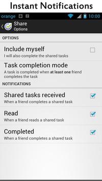 -- choose to send standard Facebook notifications to your friends, when you share a task with them;