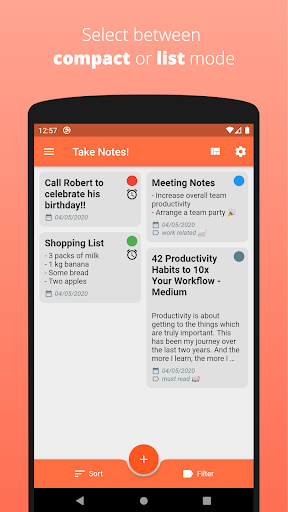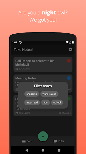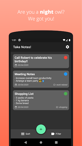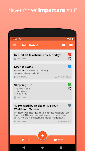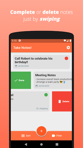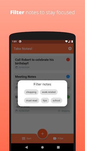 Are you having hard time remembering all important stuff? No worries, create notes easily and set reminders for them! You can also set priorities and labels for your todos so that, you can can find your todos quickly. You can filter your notes to keep yourself concentrated. You can sort them by priority or by creation date to focus on important stuff.