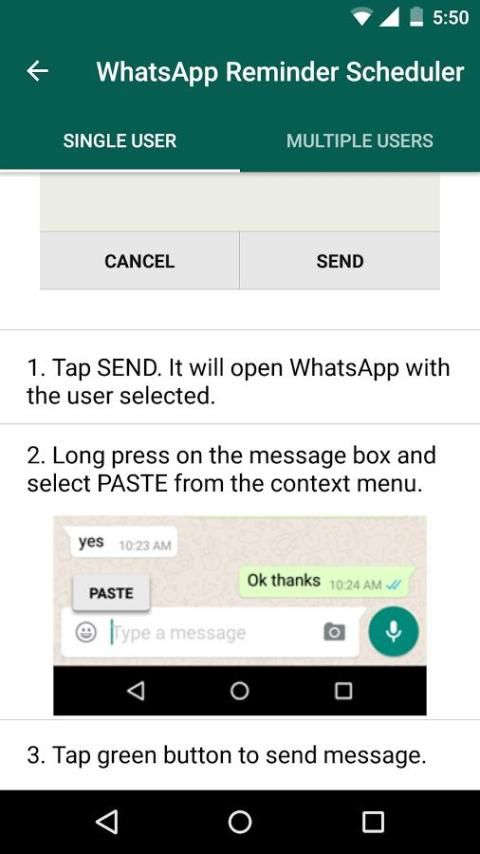 Anda dapat memilih untuk mengirim pesan ke pengguna tunggal atau Multiple User. Menggunakan pemberitahuan untuk pengingat dan sangat mudah digunakan.