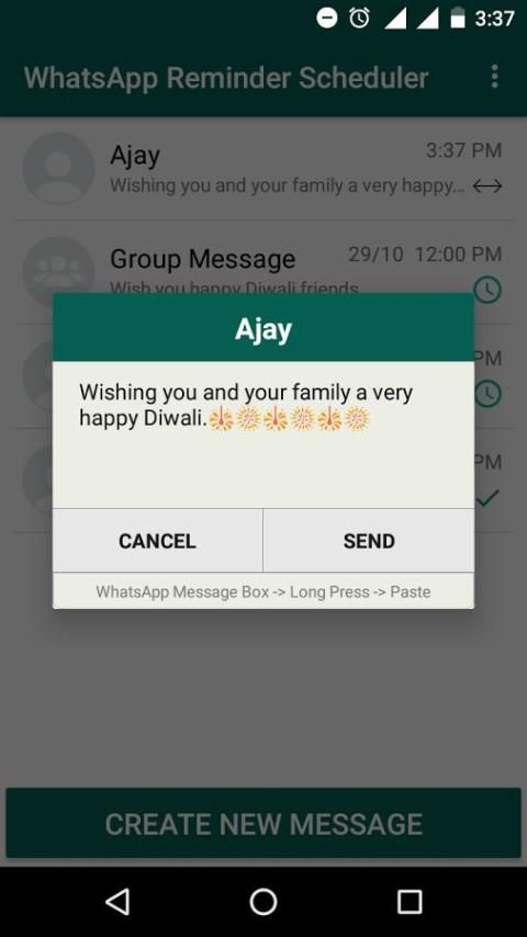 Pada waktu yang ditetapkan, dialog pesan akan muncul di layar Anda dengan KIRIM dan tombol CANCEL.