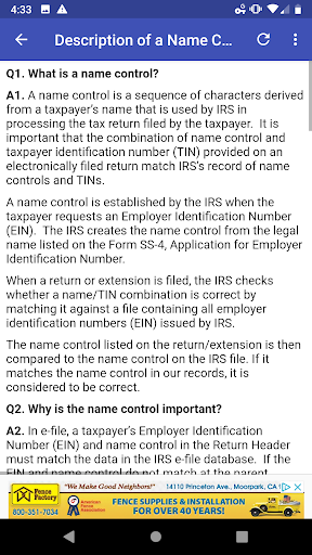 In e-file, a taxpayer’s Employer Identification Number (EIN) and name control in the Return Header must match the data in the IRS e-file database. If the EIN and name control do not match at the parent (consolidated) level, the e-filed return will reject.