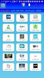 Penerapan siaran radio dan Radio Suriah ringan cepat respon aplikasi mengandung penyiar Suriah, selain untuk chatting untuk chatting dan nama-nama stasiun radio dalam aplikasi Kota FM dan Radio arabesque dan nyata dan radio solusi radio Suryana radio, dan saya berharap FM Suriah besok Melody FM dan Suara Pemuda dan Radio Rosanna dan Radio Damaskus Ninar FM sini Suriah sebelumnya Farah FM angin gelombang radio Suriah radio Alwan Yerusalem FM radio DC sekarang FM radio Karma Fuse FM radio yuan radio Orient dan Aleppo hari ini dan radio Al Rayan FM Sham FM baja Virgin FM endosperm radio dan baja Dan bahkan Radio Semua dan radio rumah FM Maratos Radio Deertna ditunjuk Republik dan pemeliharaan FM dan penghinaan radio FM Zenobia dan Radio Lama FM Radio Dawn Gott Glory dan Chauvet Mafi dan radio Qnscheran dan radio Arta FM Kurdi Radio Nawa Kurdi Radio Brushes Keren FM Radio Soriuyo Kurdi Radio Qamishlo dan Furat FM momok radio dan Mix FM di samping sekelompok penyiar pembaca terkenal dari radio Quran dan George akan semua stasiun radio tersebut ditampilkan dalam aplikasi kita