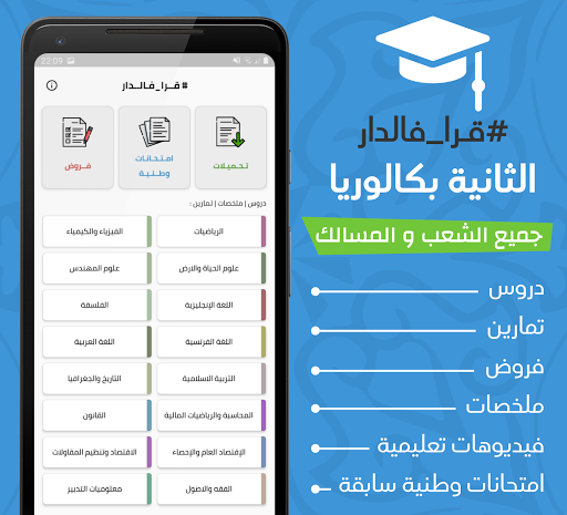 Penerapan Qara Fadrak yang diarahkan ke murid kedua di sarjana muda di Maroko adalah penerapan perpustakaan elektronik untuk semua pelajaran, ringkasan, latihan, dan asumsi tahun ini lagi dengan sarjana muda atau yang kedua di Pak di samping semua ujian nasional sebelumnya sebelumnya dengan sarjana muda atau yang kedua di Pak di samping semua ujian nasional sebelumnya dengan nasional sebelumnya dengan Baccalaureate atau yang kedua di Pak di samping semua ujian nasional sebelumnya dengan National Untuk semua orang dan jalan dan video pendidikan yang melekat pada semua pelajaran.