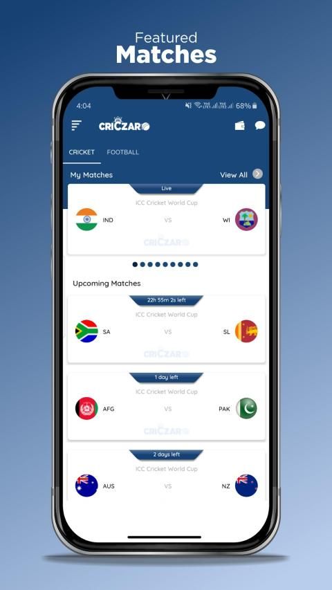 Criczar, India's most super-fun cricket league, which lets you experience the most unique features & gives you the best thrill of winning & showcase your cricketing knowledge. Create your dream team free, join contest with free coins, view live score & win prizes.