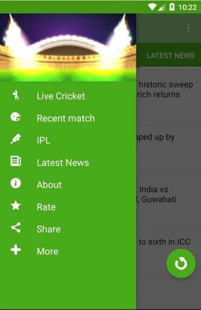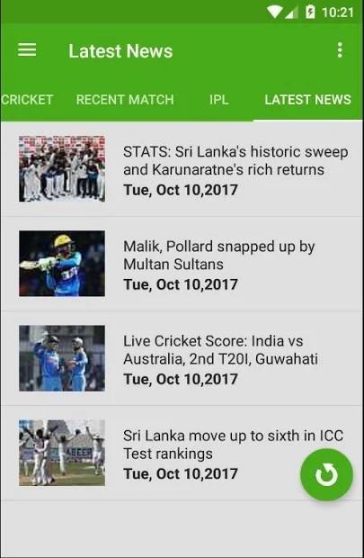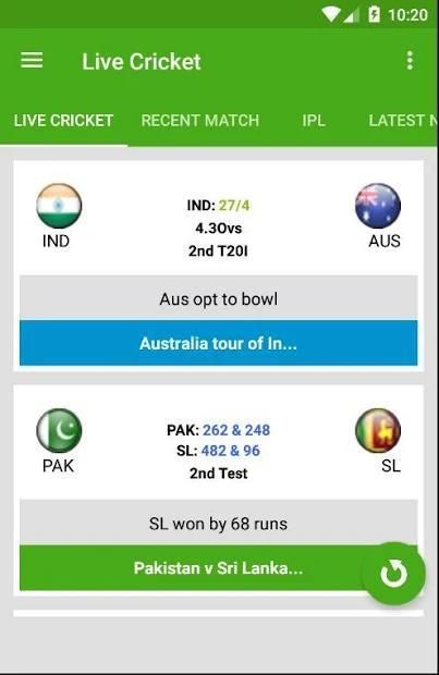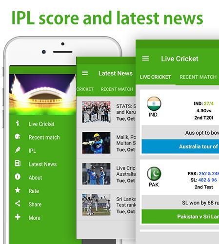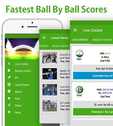 Yang terbaik Cricket App untuk mengikuti skor kriket hidup dan memberikan update tercepat live pertandingan kriket yang lebih cepat daripada media lainnya. Ini adalah aplikasi tercepat untuk memberikan Hidup Cricket Score. Dan IPL skor dan berita terbaru.