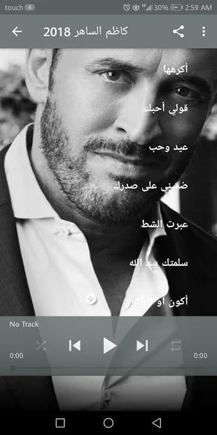 تطبيق يمكنكم من الإستماع على مجموعة من أجمل الأغاني و روائع كاظم الساهر 2018 الحصرية على الساحة الفنية لسنة 2018 ؛ حيت يحتوي البرنامج على منوعات غنائية عراقية و أخرى عربية .