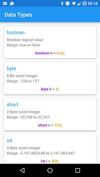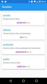 All answers to this and a lot more questions can be easily look up in this app and you do not have to look up everything on the internet. This app is perfekt if you are learning Java at the moment or sometimes a litte bit forgetfully.