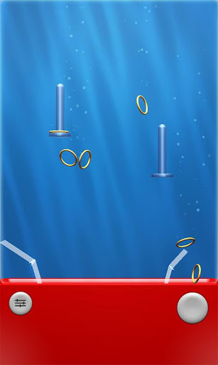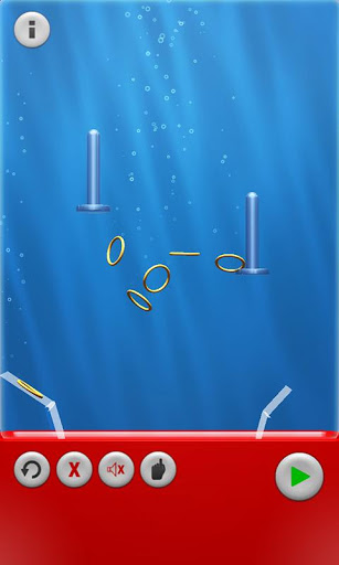 By pushing the bubble shoot button, you shoot or pump bubbles into the water. Let the six golden rings dance and try to get them on the two blue sticks.