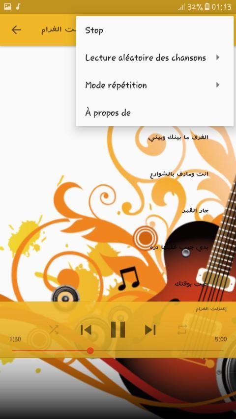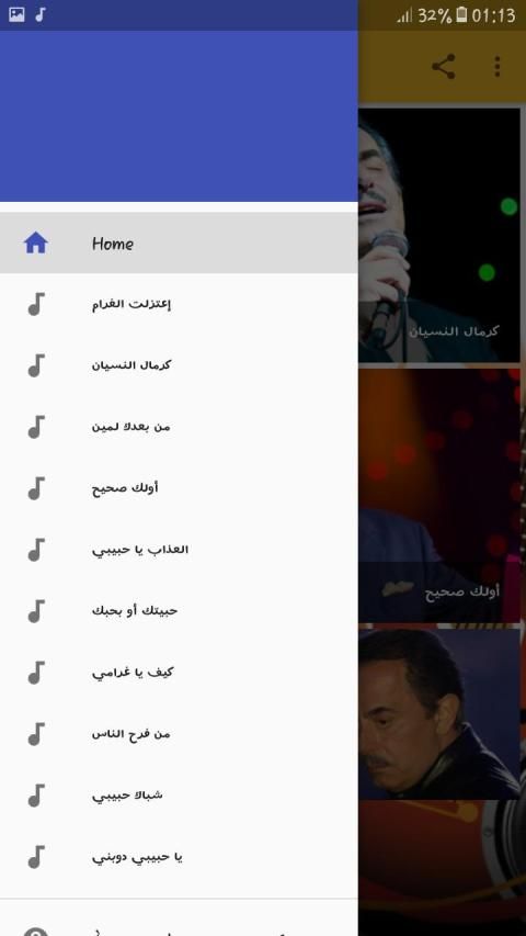 الألبومات و الأغاني التي يحتوي عليها التطبيق