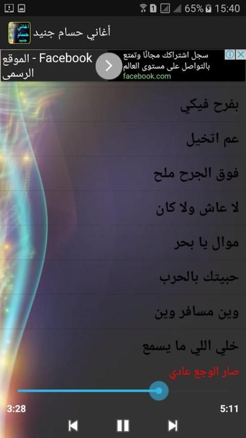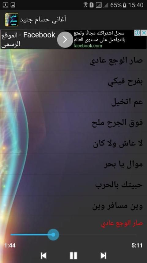 Aplikasi ini berisi lagu artis baru Hossam Junaid khas tahun 2017 dan segera akan mengumpulkan semua lagu dan menempatkan mereka dalam aplikasi di Althadit berikutnya selain sekelompok lagu Arab dan kelompok khas seniman