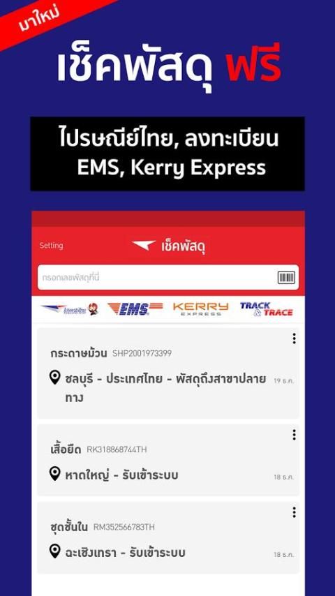 เปิดตัวใหม่! แอพเช็คพัสดุ สามารถติดตามพัสดุได้ทั้ง ไปรษณีย์ไทย ems ลงทะเบียน kerry express