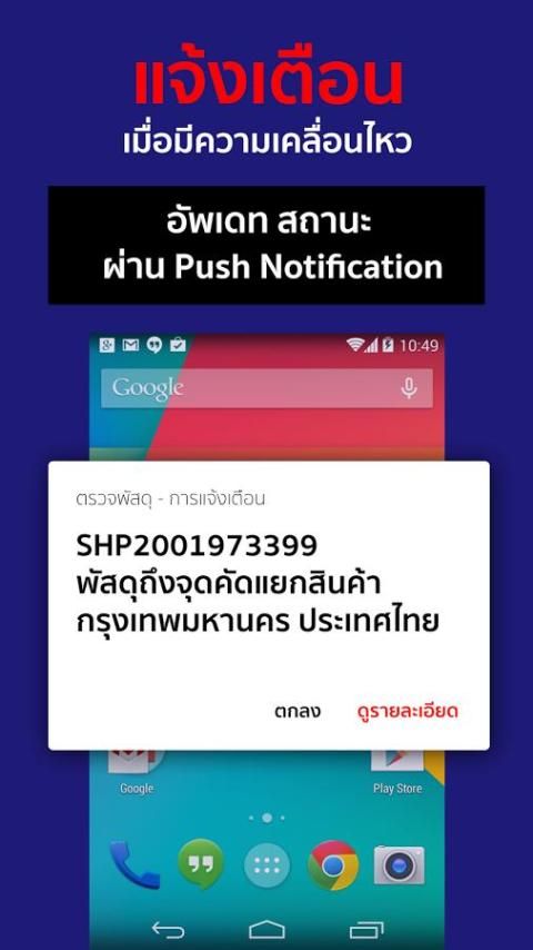 Versi saat ini mendukung aplikasi parcel ☺ Periksa paket dari kantor pos dan Kerry Ekspres Thailand, di mana ia hanya jika Anda suka, itu akan dikembangkan untuk mendukung perusahaan pelayaran lainnya melakukan lebih.
