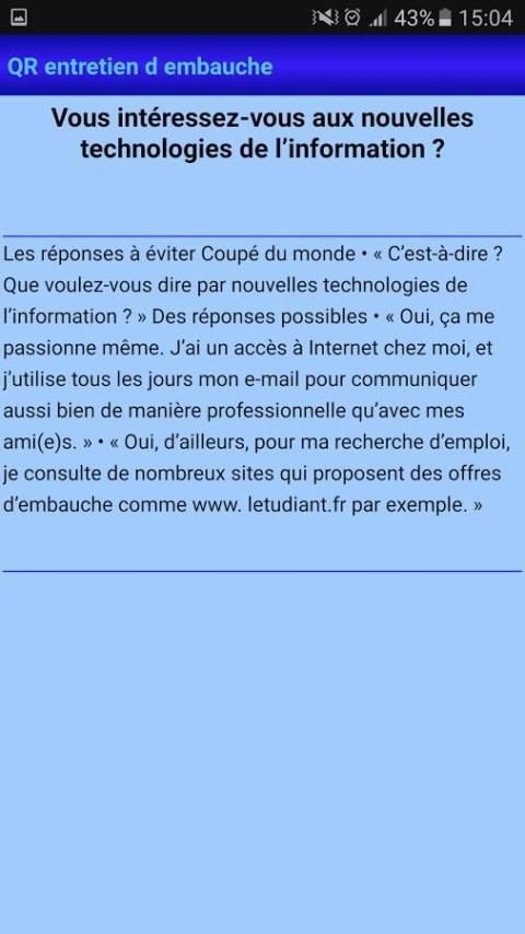 Dengan perkembangan teknologi, banyak aplikasi bermunculan di pasar aplikasi. 20,000+ Pengguna mendownload Question Réponses entretien RH versi terbaru di 9Apps secara gratis! Ini benar-benar tidak menawarkan uang. Aplikasi HOT ini di rilis tanggal 2016-08-29. Ingat, aplikasi ini akan membuat kamu gembira.