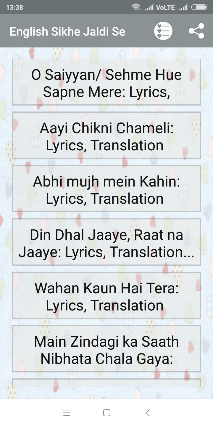 Learn English By Songs Lyrics Hindi or English.