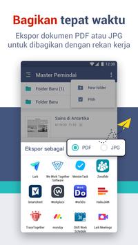 Pindaian disimpan ke perangkat Anda sebagai gambar atau PDF. Anda dapat memberi nama dan mengatur pindaian Anda ke dalam folder, atau membagikannya ke perangkat lain.
