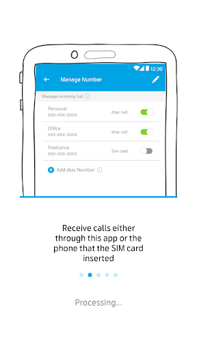 dtac call is an application for dtac customers who own more than one mobile phone number to manage incoming and outgoing calls up to 5 mobile phone numbers, including sending-receiving text messages and enjoying all special privileges from dtac reward. You can simply connect dtac call via any internet connection (both SIM card and WiFi) in both domestic and international. (Incoming and outgoing calls through dtac call application via dtac SIM card will not be charged for Internet usage.)