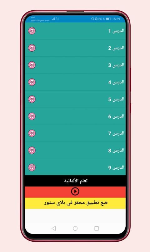 هذا التطبيق كما قلت لكم انه يحتوي على 50 درس صوتي من أصل مئة، حيث لدينا تطبيق آخر "تعلم الألمانية ( الجزء الثاني)" حيث به تتمة الدروس لتعلم الألمانية