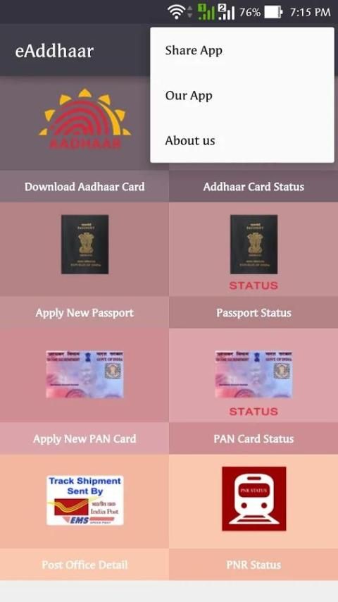 Sekarang Its Mudah Untuk Menerapkan, Memperbarui dan Pemeriksaan Semua Jasa Pemerintah oleh Satu klik dengan e-Rail, e-addhaar, Paspor, aplikasi PAN.