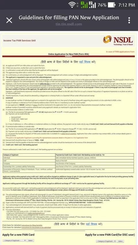 e) Terapkan Untuk New PAN Card.