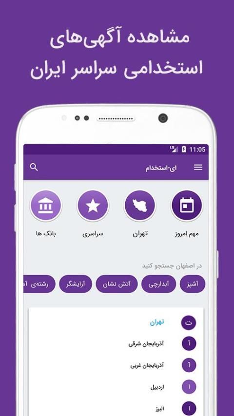 با برنامه موبایل «ای-استخدام» میتوانید آگهیهای استخدام معتبر را در سراسر کشور مشاهده کنید.