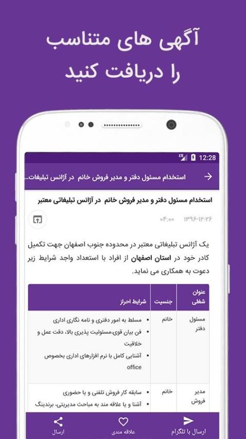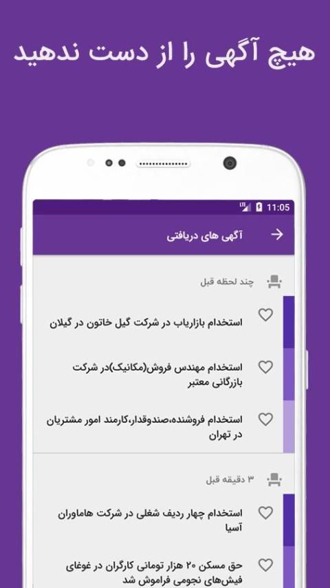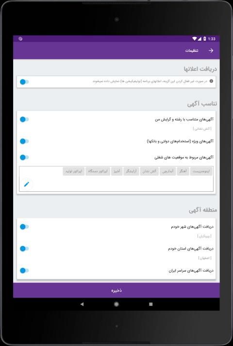 • اعلان مشاغل، کارها و آگهی های مرتبط با « رشته تحصیلی » شما بصورت نوتیفیکیشن