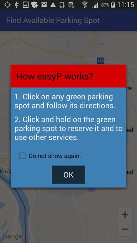 EasyP mengelola ruang parkir lembaga swasta seperti sekolah, universitas, atraksi, klinik, mal dll menggunakan alat teknologi dalam rangka meningkatkan masalah parkir yang orang hadapi sehari-hari. Ketika orang tidak menemukan tempat untuk memarkir, menciptakan kemacetan lalu lintas dan polusi udara dari emisi karbon. Kemacetan lalu lintas dapat menyebabkan kecelakaan, yang kemudian memperburuk situasi. Parkir situasi saat ini tidak efisien karena menyebabkan buang-buang waktu, tenaga dan uang dari penyalahgunaan bahan bakar. Konsep ini membantu baik lembaga dan pelanggan. EasyP mengelola tempat parkir dengan memasang sensor dan hambatan otomatis di setiap tempat parkir. Ini terhubung melalui GPS untuk aplikasi, yang memungkinkan pengguna untuk menemukan ruang parkir yang tersedia, buku itu dengan memungkinkan penghalang otomatis dan kemudian membayar aman melalui Stripe. pengguna melacak tempat parkir melalui peta dimana blok penghalang otomatis tempat sampai s / ia mencapai dan kemudian membukanya melalui klik tombol. EasyP juga menawarkan layanan tambahan, yang memberikan nilai dan kenyamanan bagi pelanggan. Mereka hanya bisa memesan cuci mobil mobile, inflasi ban dan bayangan untuk mobil mereka ketika sedang diparkir. EasyP adalah ide inovatif yang akan meningkatkan masalah parkir di banyak lembaga swasta dengan menyediakan efektivitas dan efisiensi.