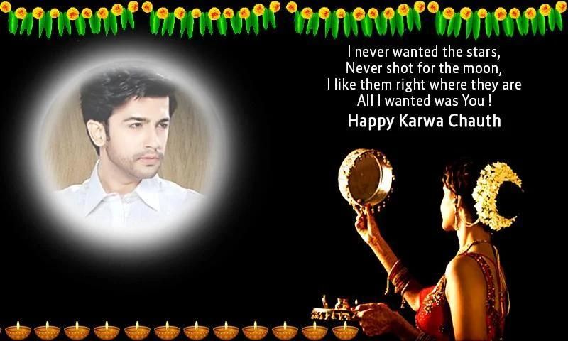Karwa Chauth Photo Frame - करवा चौथ app contains beautiful Photo frame with Love quotes to send as karwa Chauth 2019 Wishes to your husband or wife. You can place the photo of your partner and send as Happy Karwa Chauth 2019 wishes. Download and install this Karwa Chauth Photo Frame - करवा चौथ App now and select the photo frame of your choice. Add your photo in the Karwa Chauth photo frame and adjust it. Add text to the photo frame and save it.