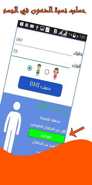 * يمكنك التطبيق من حساب نسبة الدهون بالجسم بكل سهولة