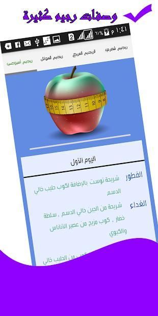 * يحتوي التطبيق على وصفات رجيم رائعة