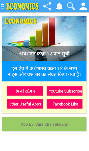 App contains solutions of all chapters of NCERT Economics for class XII. It contains some sample questions papers and chapter wise question answers also. This app has a very simple user interface.