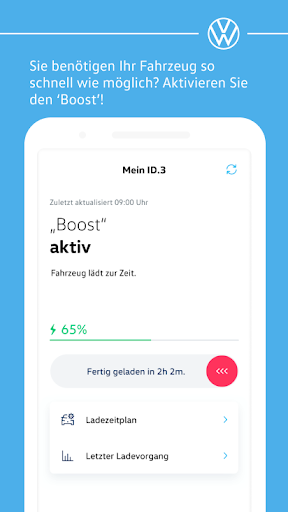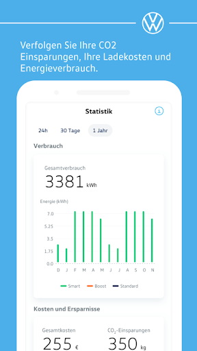 Apakah Anda mengikuti penghematan CO2 dan konsumsi energi dari proses pengisian Anda-di rumah dan saat bepergian.Fungsi Boost segera memuat kendaraan Anda sehingga Anda selalu siap untuk digunakan.