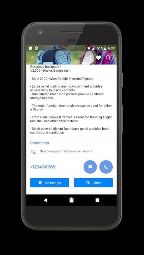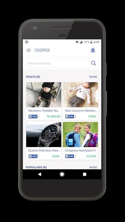Aplikasi ini memungkinkan Anda membuat aplikasi android asli. Halaman facebook Anda atau kelompok akan digunakan sebagai dasar backend. Aplikasi mencakup semua fitur apa aplikasi e-commerce lengkap harus memiliki.